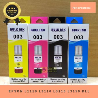 Tinta Bulk Ink Epson 003 L1110 L3110 L3116 L3150 dan bisa untuk seri lain yang terpenting kode tintanya sama, misalnya L4150 L4160 L5190 dan lainya. Kami sarankan untuk tidak menggunakan tinta Epson 003 yang KW atau palsu yang marak dijual online dengan harga sangat murah (sekitar 20.000 – 30.000). Karena jika dari Epson Indonesia yang…