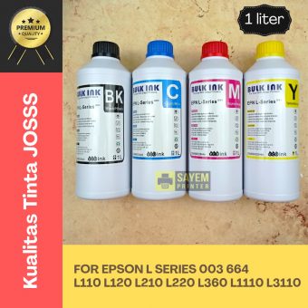 Tinta Epson 1 Liter Bulk Ink 003 664 L120 L121 L310 L360 L1110 L3110 dan dapat untuk tipe lainya. Bagi yang sudah memakai tinta merek ini tentu sudah paham tentang kualitasnya. Hasil cetak bagus Warna cerah Tidak merusak head Kualitas tinta konstan Suport semua printer EPSON dengan jenis tinta dye, misalnya : T11, T20E, T13,…